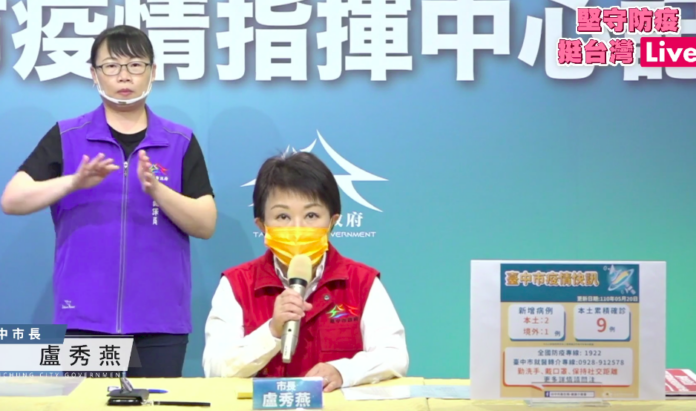 台中市長盧秀燕(圖)召開疫情記者會。圖:直播截圖