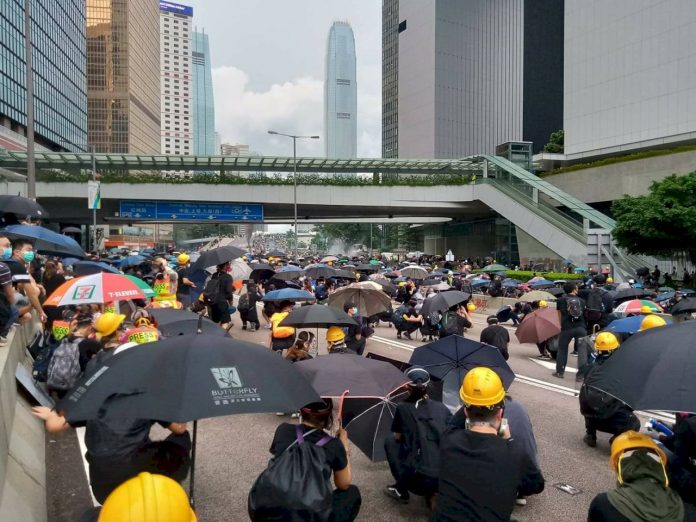 今天下午的反送中遊行,原本鎖定中聯辦大樓,但是該大樓週邊有上千名防暴警察駐守,因此,示威民眾將主戰場轉移到位於中環與金鐘一帶的政府總部、立法會大樓以及灣仔警察總部,大批黑衣示威者下午開始在夏愨道築起路障。