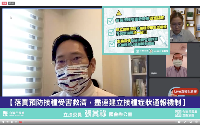 民眾黨立委張其祿24日舉辦「落實預防接種受害救濟,盡速建立接種症狀通報機制」記者會,他在會中指出,目前已有多起接種AZ疫苗後死亡案例,引發民眾恐慌。雖然衛福部訂有「預防接種受害救濟基金徵收及審議辦法」,但今年2月修改條文又在接種疫苗與健康危害認定「無關」的項目中,增定了「醫學證實未支持其關連性」文字,遭外界批評提升舉證困難度、補償看得到、吃不到。