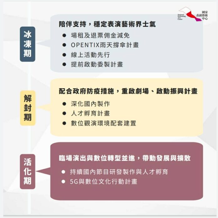 國家表演藝術中心推出2支撐3推進方案,協助表演團隊守住元氣,儲備未來復甦動能。(國表藝提供)