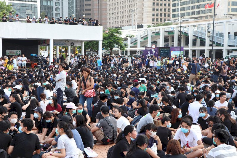 由本土或「港獨」力量組成的香港學生罷課聯盟決定取消9月1日在港島添馬公園的罷課集會,但仍鼓勵中學生在開學後罷課。圖為香港近千名中學生22日參加反對修訂逃犯條例集會。(圖:中央社)