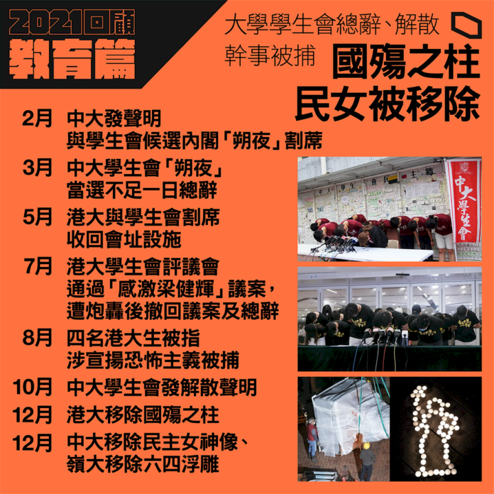 香港公民社會的打壓無日無知,半年之前,筆者曾經寫過數篇關於香港不同大學學生會的文章「香港大學學生會總辭之一星期後—我們可以做的就是無條件地支持」、「中共如何毀掉香港各大學學生會?」等文章,那時仍有一絲的盼望,會有一些沒有在風頭風眼上的大學生會能夠留存下來保留實力。可惜,隨著2022年1月20日,香港教育大學(下稱「教大」)宣佈接管教育大學學生會(下稱「教大學生會」)所有管理與校務角色,並同時宣佈接管學生會二十多年留下來接近900萬港元(接近3200萬新台幣)財政儲備、場地、辦公室等一切場資,等同把整個學生會從教育大學中連根拔起。