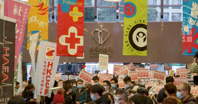 2019年香港「反送中」運動期間成立的醫管局員工陣線,於2020年2月香港爆發疫情初期,曾發起一連5天醫護罷工行動,要求政府全面「封關」阻截病毒傳入香港,當時有數千名公立醫院員工參加。