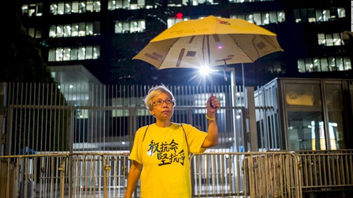 被稱為王婆婆的香港65歲婦人王鳳瑤(Alexandra Wong),因被控參與非法集會,在13日被判入獄8個月。(檔案照片/AFP)