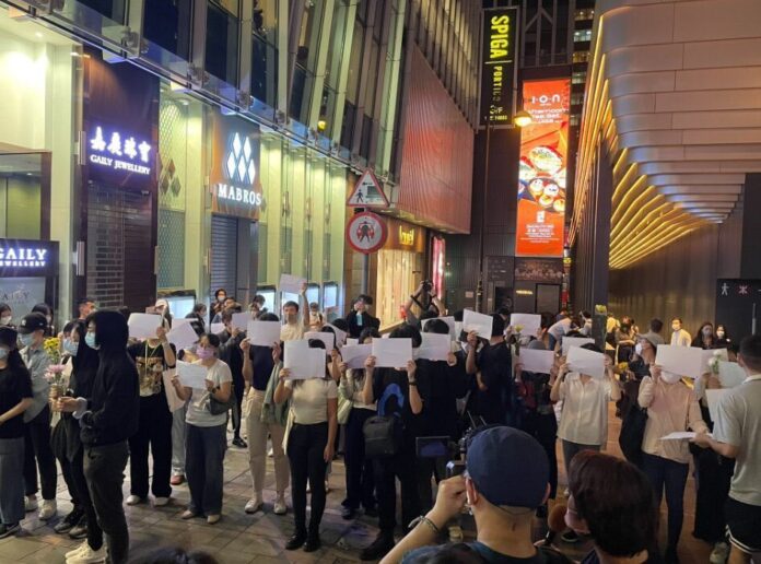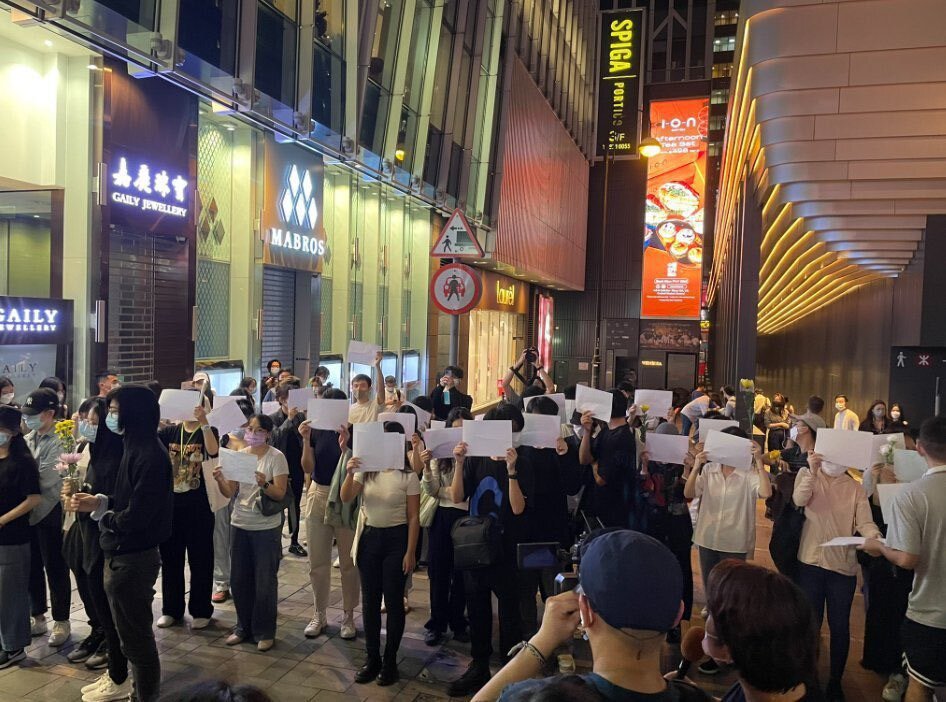 日前香港有民眾以行動聲援「白紙革命」。(圖取自推特)
