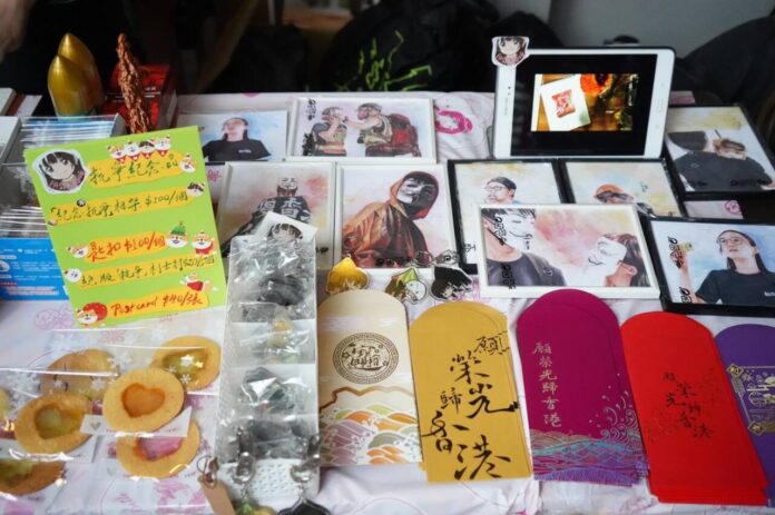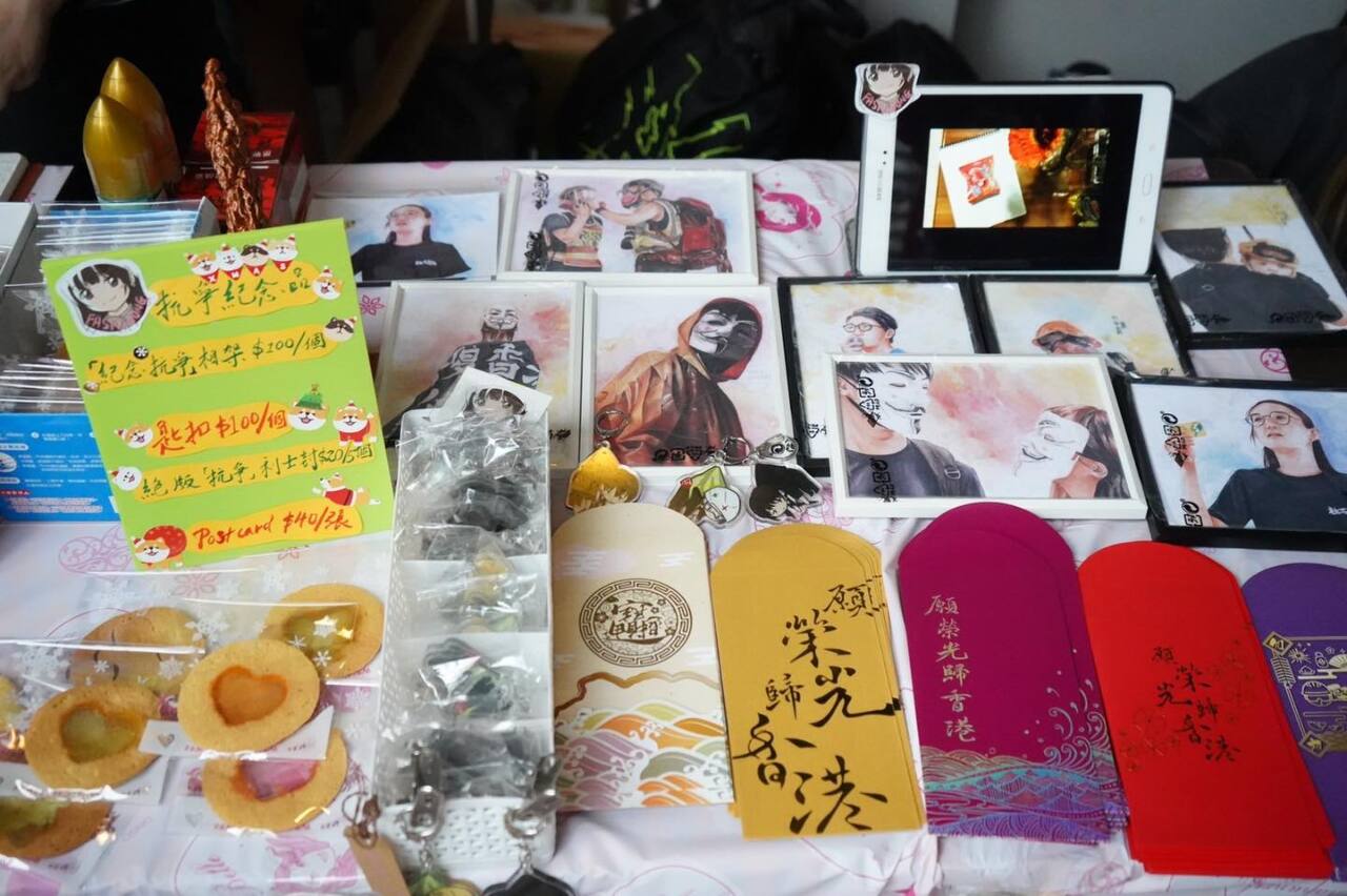 2021年在台北舉辦的香港聖誕市集,現場攤位陳列許多抗爭紀念品與手作小物。(圖:台灣香港協會臉書)