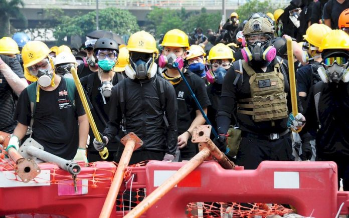 24日在香港觀塘的示威活動中,警方至今拘捕32人,其中的3男1女,分別被控暴動罪及非法集結罪。(資料照片)