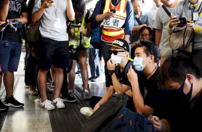 8月24日下午,香港再度爆發反送中遊行。香港地鐵公司卻突然在早上宣佈中午12點起暫停部分列車服務。(翻攝自立場新聞)