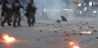 警方晚間施放多輪催淚彈 示威者扔擲燃燒彈及糞便