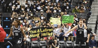 上百香港抗議者著黑衣 現身NBA籃網賽事