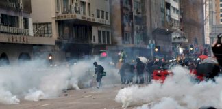 825開槍水砲車齊發 港警與泛民議員針鋒相對