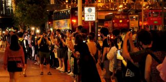香港多區市民築起人鏈亮手機燈 力促五大訴求