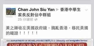 網傳黃之鋒假美國證件露餡 移民傳言不攻自破
