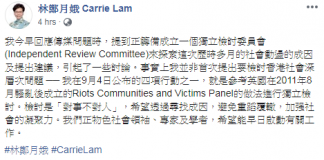 林鄭考慮設「獨立檢討委員會」 網批「劃錯重點」
