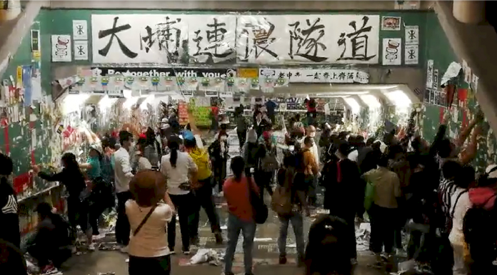 香港大埔連儂隧道遭破壞 文宣紙張散落滿地