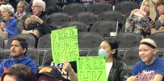 費城76人對戰廣州龍獅 球迷喊香港自由遭驅逐