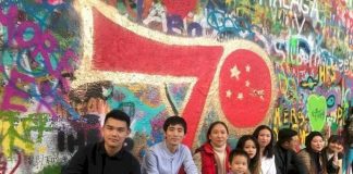 布拉格連儂牆 遭中國遊客塗鴉慶十一