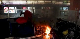 沙田站一列港鐵列車 車頂被汽油彈擲中著火