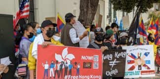 十一抗中 洛杉磯示威人群聚集中國領事館