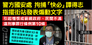 港泛民人士譚得志被捕 警:發表引憎恨政府言論