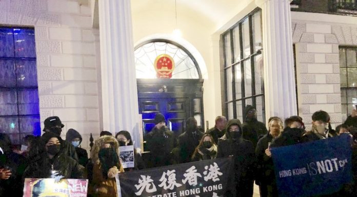 心繫家鄉情勢 倫敦港人聚集中國駐英使館外抗議