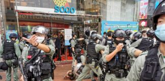 港區國安法生效 警方水砲車驅散七一遊行示威者