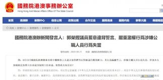 關切香港民主人士也不行 國台辦批台操弄港事務不得人心