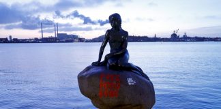 丹麥小美人魚銅像遭人塗鴉 噴上「光復香港」英文字