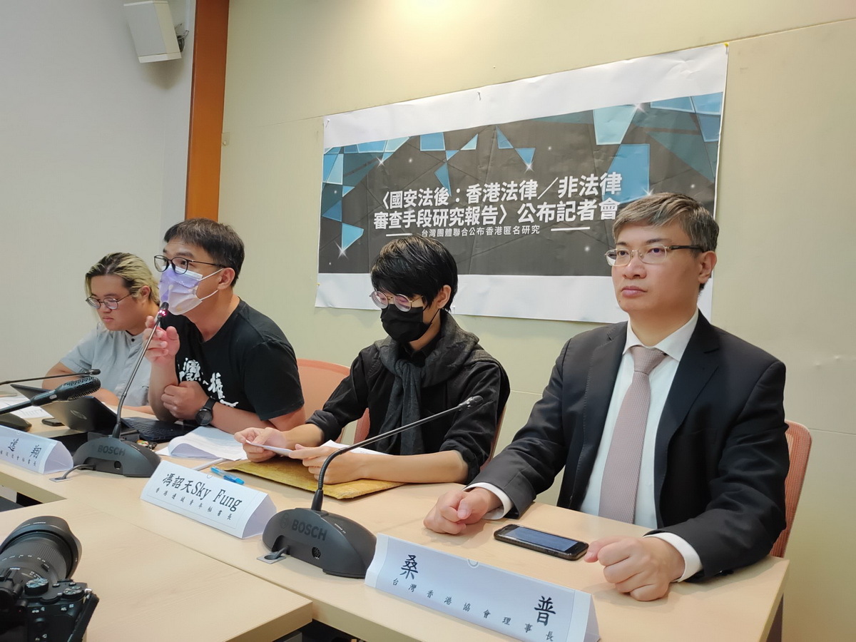台灣人權促進會、香港邊城青年、台灣香港協會、民間司改基金會等民間團體30日公布一份由香港行動者匿名研究團隊發表的「國安法後:香港法律/非法律手段審查手段研究報告」 (央廣記者王照坤 攝)