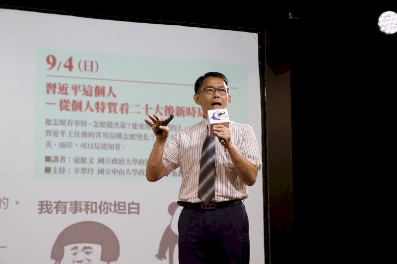 財團法人龍應台文化基金會4日在台北舉行「習近平這個人-從個人特質看二十大後新時局」思沙龍,由研究中共政治的政大國關中心主任寇健文做主講。