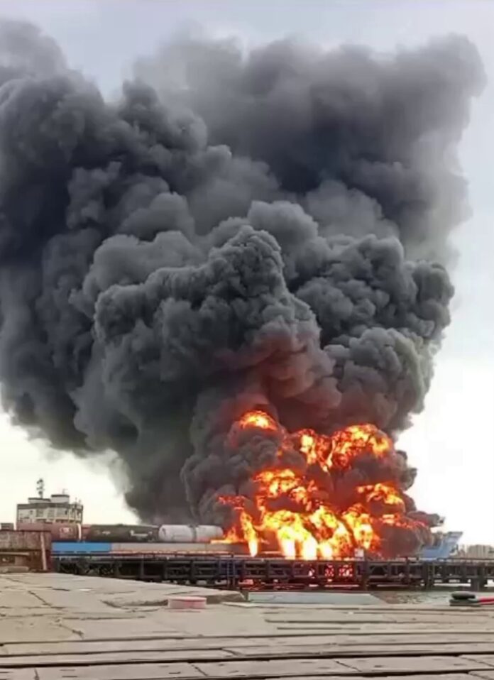 地方當局稍早已經表示,這艘油輪22日在對俄國南部克拉斯諾達州(Krasnodar)的這處港口發動的攻擊中,陷入火海並毀損。