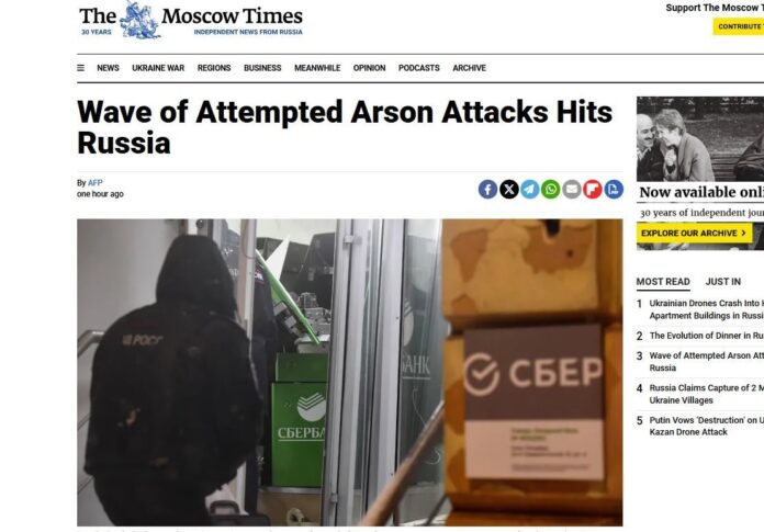 據媒體報導,俄羅斯過去3天發生了一波針對銀行、購物中心、郵局和政府大樓的縱火浪潮。