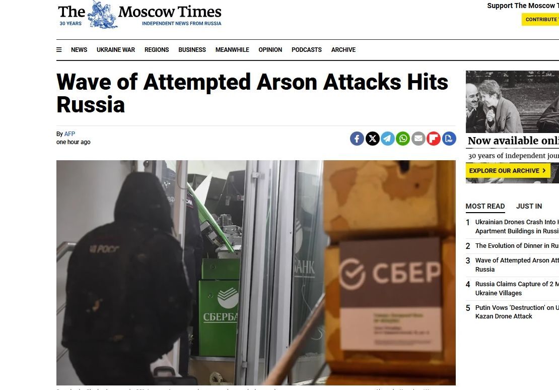 據俄羅斯新聞社(Ria Novosti)引述國營的「聯邦儲蓄銀行」(Sberbank)媒體部門報導,上週的未遂縱火案增加了30%。