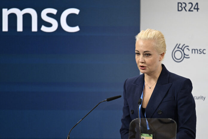 俄羅斯異議人士納瓦尼遺孀尤莉雅(Yulia Navalnaya)14日出席慕尼黑安全會議。(AFP)