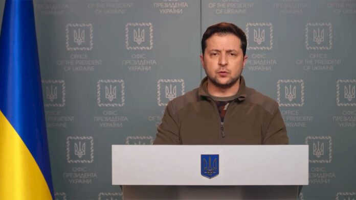 烏克蘭總統澤倫斯基(Volodymyr Zelensky)27日呼籲外國人士幫助烏國抵禦外侮。(翻攝自烏克蘭總統府臉書)