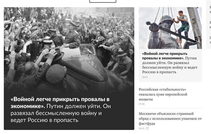《CNN》報導指出,這些文章在親克里姆林宮的官媒網站上發表後,幾乎被秒刪,這些文章利用與蘇聯擊敗納粹德國77週年掛鉤,但內容卻是批評蒲亭利用俄羅斯的勝利日為他在烏克蘭的暴力襲擊來辯護。