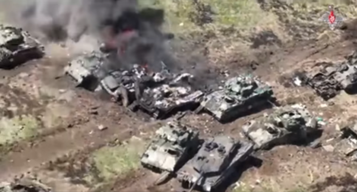 根據俄國國防部透過即時通訊Telegram發布的影片,畫面裡出現的似乎是2輛德製豹式坦克,以及2輛受損的美製布萊德雷裝甲戰鬥車輛。
